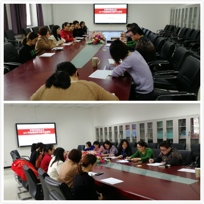 会上,学院教工、学生支部共 4 个支部的支部书记分别紧紧围绕 2017 年度本人履行党建责任情况、基层党建进展情况和成效、思想政治工作情况、推进党风廉政建设情况、本支部党建工作存在的突出问题,以及今后加强和改进工作的思路措施等方面进行了详细述职。郭辉书记和牛慧君副书记逐一进行了详细点评。述职结束后,郭辉书记进行了总结,她首先肯定了各位支部书记一年来抓基层党建工作取得的成绩,在做好本职工作的同时圆满完成了 2017 年各项工作任务。同时也提出三点期望,一是要加强支部书记的示范引领作用,积极带领支部党员开展支部各项工作,充分发挥党员的先锋模范作用和基层党组织的战斗堡垒作用;二是要注重工作创新,结合各支部自身和专业特点,运用多种形式,借助现代媒体等手段有效地开展党建工作;三是希望党员、群众对支部工作和支部书记的工作,发挥好监督作用,共同为基层党建工作贡献力量。