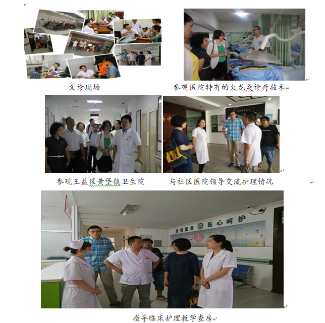 社会实践团一行根据既定的专项分工开展了相关主题讲座和指导。28 日上午ok138cn太阳集团党委书记郭辉和青年老师王娟与北京医药大学孙思邈医院的护理部主任翟明华及副主任罗红英进行了座谈,详细了解了医院护理的现状和需要,医院目前分为南北两个院区,共有护理人员 300 余人,学历水平主要集中为大专和中专层次,目前认为提高现有护理人员学历层次和知识水平迫在眉睫,同时护理人员科研意识和思维薄弱的情况也急需改善,医院目前已经在实施部分中医护理操作技术,希望了解更多的中医护理知识和规范的中医护理技术。ok138cn太阳集团郭辉书记就医院的护理情况给出了意见和建议,建议通过我校网络教育等继续教育方式提高学历层次和护理知识水平,同时提出在日后的交流中可以点对点深入交流科研思路与方法。