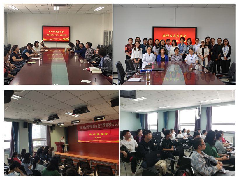 本次交流活动共分为两部分。首先,韩丽沙老师、张美琦老师与十余名青年教师开展座谈会。韩丽沙老师从自身的职业历程出发,分享了自己选择护理行业的原因、护理职业生涯的收获以及所获得的职业自豪感,鼓励各位教师立足职业自豪感,关注自身成长的同时关注学生培养与学科发展。张美琦老师以入职以来二十多年的学生管理工作经验感悟出发,鼓励各位教师关注学生、关心学生、关爱学生,在与学生共同成长中,收获幸福感与获得感。随后,韩丽沙老师为学生带来了关于护理职业认识与发展的讲座。韩老师分别从“选择护理专业的初衷”、“在临床上该如何应对紧急问题”、“临床注意事项”几个方面出发,结合自身从业历程,与同学们分享了个人体会,并表达了对同学们的殷切希望。韩老师重点强调了在学习、工作中做到务实、主动、负责的重要性,希望同学们主动培养科研意识、加强科研能力。