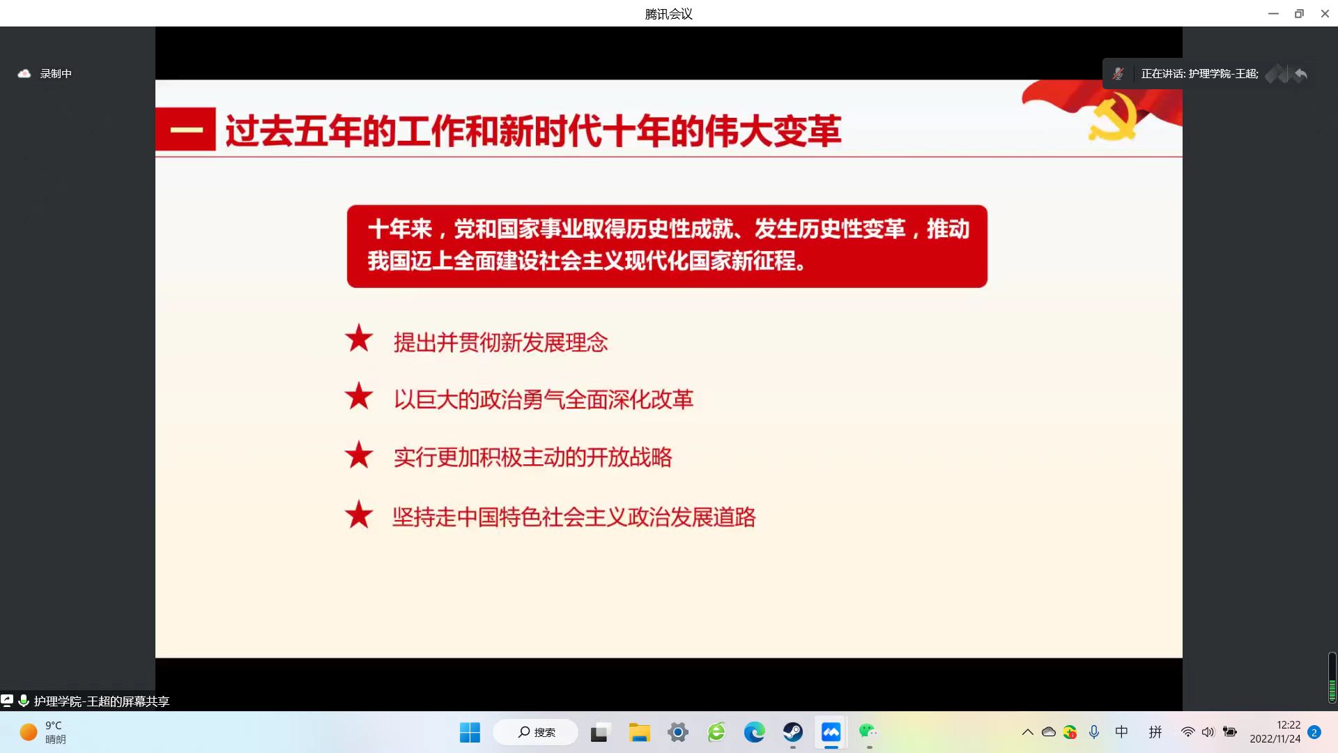 王超书记讲解生动、举例鲜活,让与会的师生党员既为十年伟大变革的成果感到荣耀和振奋,又感受到了新时代青年、党员身上的责任和重担。新征程是充满光荣与梦想的远征,蓝图已经绘就,号角已经吹响,广大师生党员和积极分子要始终牢记党的初心和使命,一同创造更美好的明天。