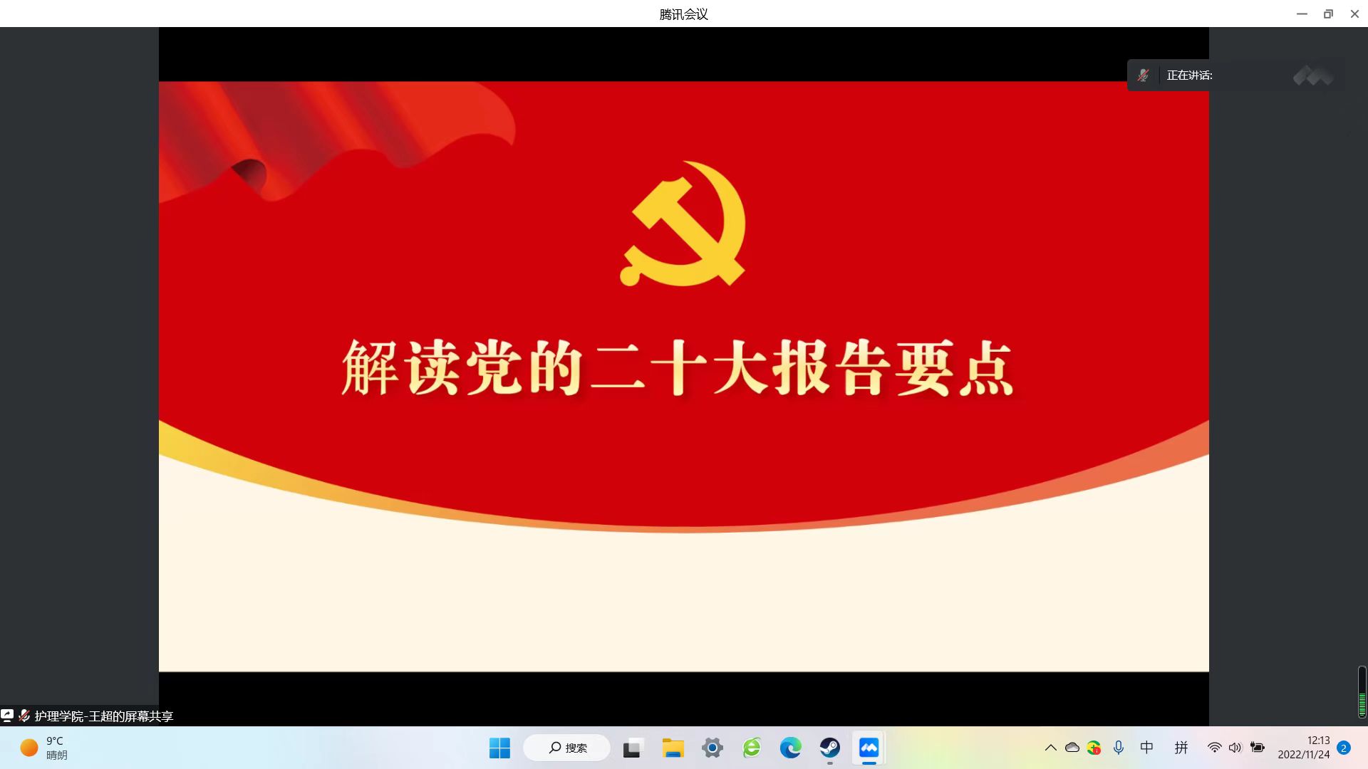 为深入学习贯彻党的二十大精神,11月24日中午,ok138cn太阳集团党总支书记王超为学院师生党员和积极分子讲授党课,党课以线上会议形式开展,全院共184名师生党员和积极分子参与。