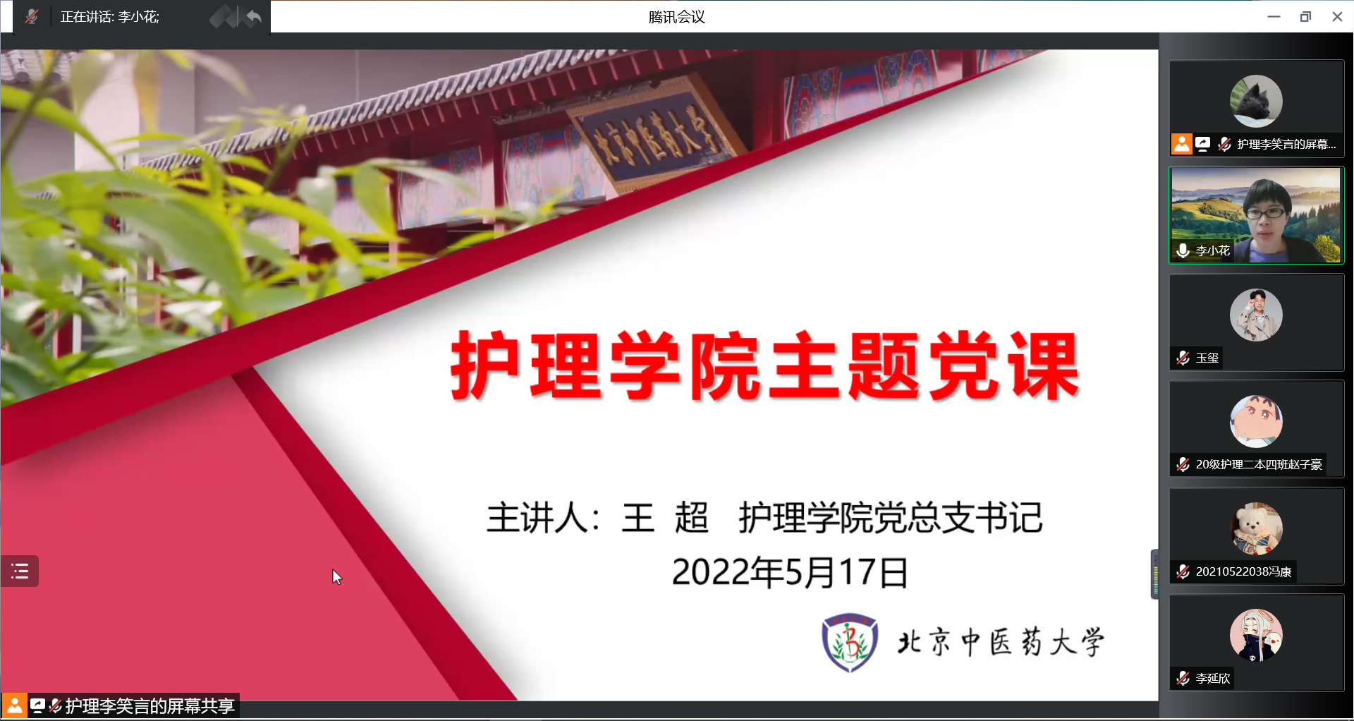 习近平总书记在全国抗击新冠肺炎疫情表彰大会上用“生命至上,举国同心,舍生忘死,尊重科学,命运与共”20个字总结了伟大抗疫精神。目前,北京市疫情防控形势严峻,特别是韵达快递聚集性疫情涉及我校良乡校区,为充分弘扬伟大抗疫精神,筑牢学校安全防线,ok138cn太阳集团党总支于5月17日晚在线上举办《弘扬伟大抗疫精神,共筑校园安全防线》的主题党课。本次党课由ok138cn太阳集团党总支书记王超主讲,学院师生党员、入党积极分子等400余人参加,党课由ok138cn太阳集团党总支副书记李小花主持。