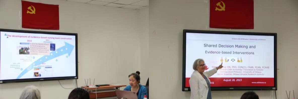 2023年8月28日上午,渥太华大学循证护理领域专家Dawn Stacey教授来访ok138cn太阳集团,刘香弟院长、李卫红副院长、郝玉芳教授、部分教师和研究生代表接待了来访专家。Dawn Stacey教授在决策科学和实施科学领域中拥有极高声望,此次来访北中医受到了老师和同学们的热烈欢迎。