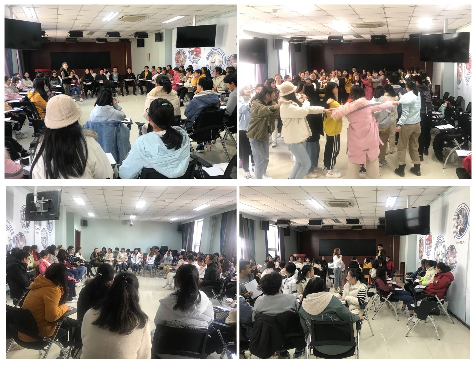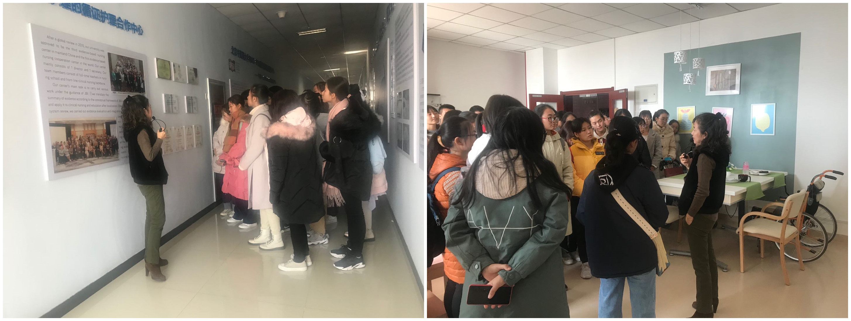 周老师首先向班级同学简要介绍了学院杏林成长导师方案的设计和安排,并隆重介绍了班级杏林成长导师郝玉芳教授。郝玉芳教授表示非常荣幸作为一名杏林成长导师将自己的成长经验与同学分享,今后将紧密联系班级,根据学生的发展需求举办一系列的主题活动,并将自己的研究生团队引入到接下来的主题活动中,加强朋辈间的引领作用。随后,郝玉芳教授与其博士生李学靖带领大家进行了团体训练活动,活动在欢快、热烈的气氛中进行,活动后学生积极分享感受,大家纷纷表示活动中收获的赞美激发了个人的自信心,加深了对自己的了解。郝玉芳教授总结时期望大家在今后的工作生活中要勇于沟通、善于赞美、开创美好未来。接下来,郝教授回顾了个人在循证护理研究之路的发展历程并介绍了目前循证护理研究中心的发展现状,鼓励大家要明确人生目标、并努力为之奋斗。活动最后,郝教授带领同学们参观了循证护理研究中心和老年护理实验室,引领同学们走近循证护理,引导大家关注人文关怀在护理工作中的重要性。