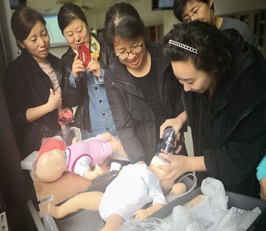 为促进该课程更好地发展,进一步完善课程内涵建设,2019年ok138cn太阳集团成功申报了教育教学改革项目“全校急救课程平台项目”,投入更大力度优化上课环境,丰富课程内涵,将学院一层的三个房间建成融院内急救、院前急救、急救示教室为一体的急救综合训练平台,并购置了QCPR安妮复苏模拟人、婴儿/儿童急救模型、气道梗阻模型、球囊呼吸面罩、自动体外除颤器、急救转运车、定量化心肺复苏培训考核系统等仪器设备,极大充实了急救实验物资,改善了实验条件, 为后续开发急救实验课内容,促进急救课程建设打下了坚实的基础。同时,随着护理实验中心课后开放网上预约平台投入使用,也为全校急救训练平台的平稳运行、信息化管理提供了重要保障。
