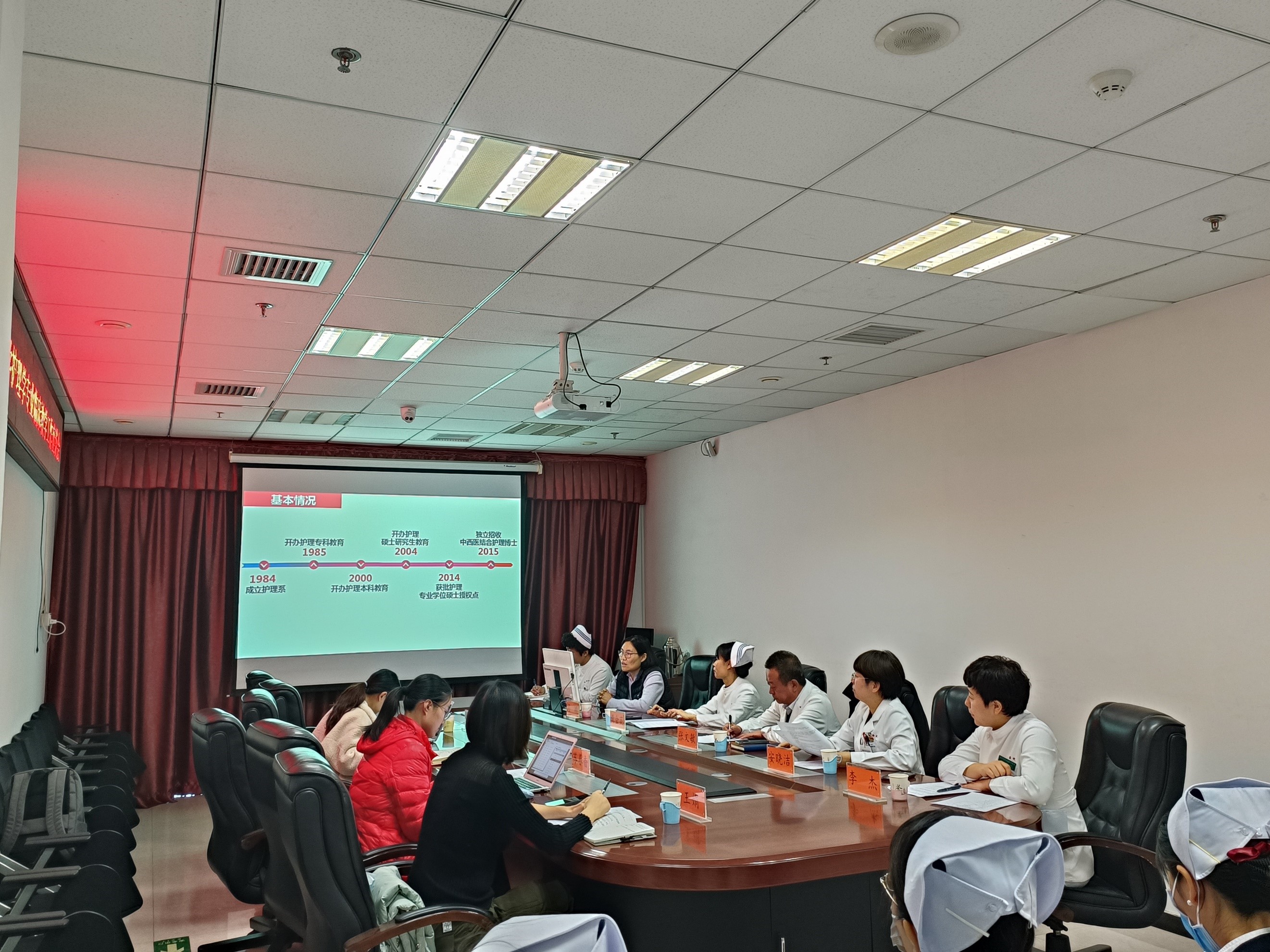 会议由黄会英主任主持,张文敏副院长做开场致辞,张院长介绍了良乡医院的整体情况,提及与大学地理位置较近的优势,希望以后加强院校合作,不断推动医院和学院教学共同发展。随后护理部闫颖副主任介绍了良乡医院护理教学的师资队伍、科室概况、见习带教等整体情况。岳树锦副院长简要介绍了太阳集团tyc9728和护理学专业的发展历史,以及近年来护理学专业办学的基本情况,并着重介绍了实践教学中课间见习和集中见习工作安排情况等。王娟老师详介绍了ok138cn太阳集团护理本科生见习工作的具体管理流程和要求等。随后,与会人员们就如何做好我院护理专业见习工作进行了热烈的讨论,期间科室带教老师们提出了很多实际问题,大家进行了热烈的探讨。