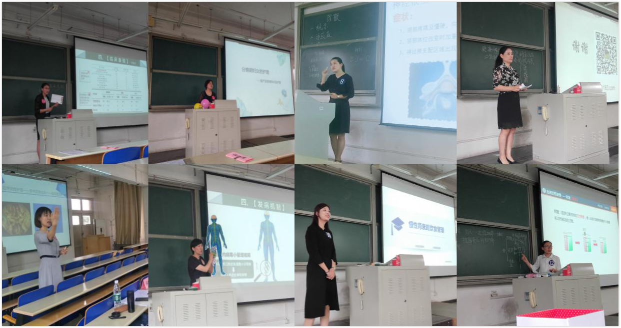 本次比赛设置了讲课演示和素质问答两个环节,具体赛程、要求和评分标准等均按照我校教务处组织的讲课比赛规则进行。参赛单位和教师个人均高度重视本次比赛,赛前做了精心的准备,在现场比赛中围绕本科护理人才培养需求,紧扣课堂教学设计,结合临床实际工作,利用教学PPT、教具、音视频和现场互动等多种方式生动形象的展示了各自的教学内容。