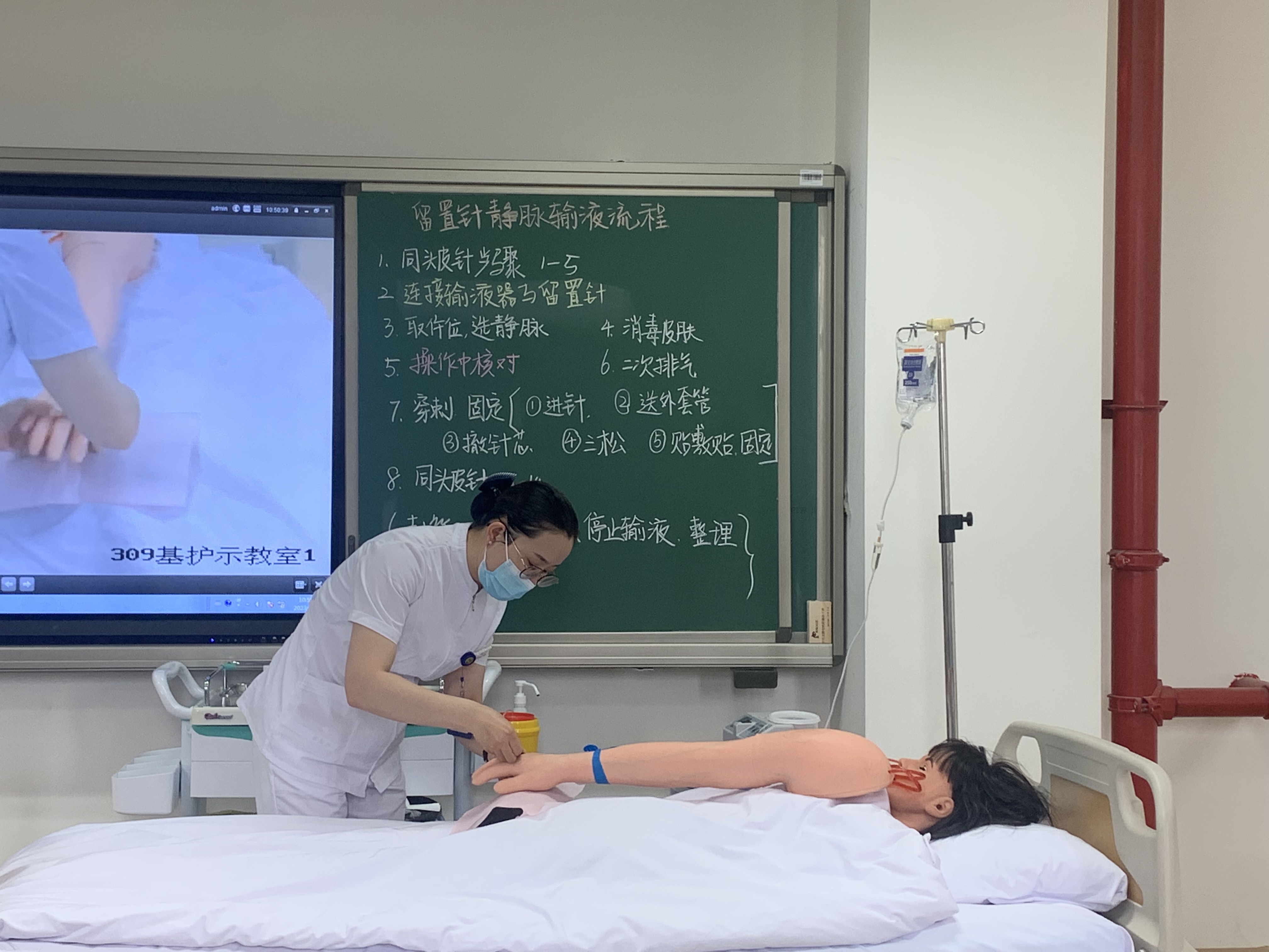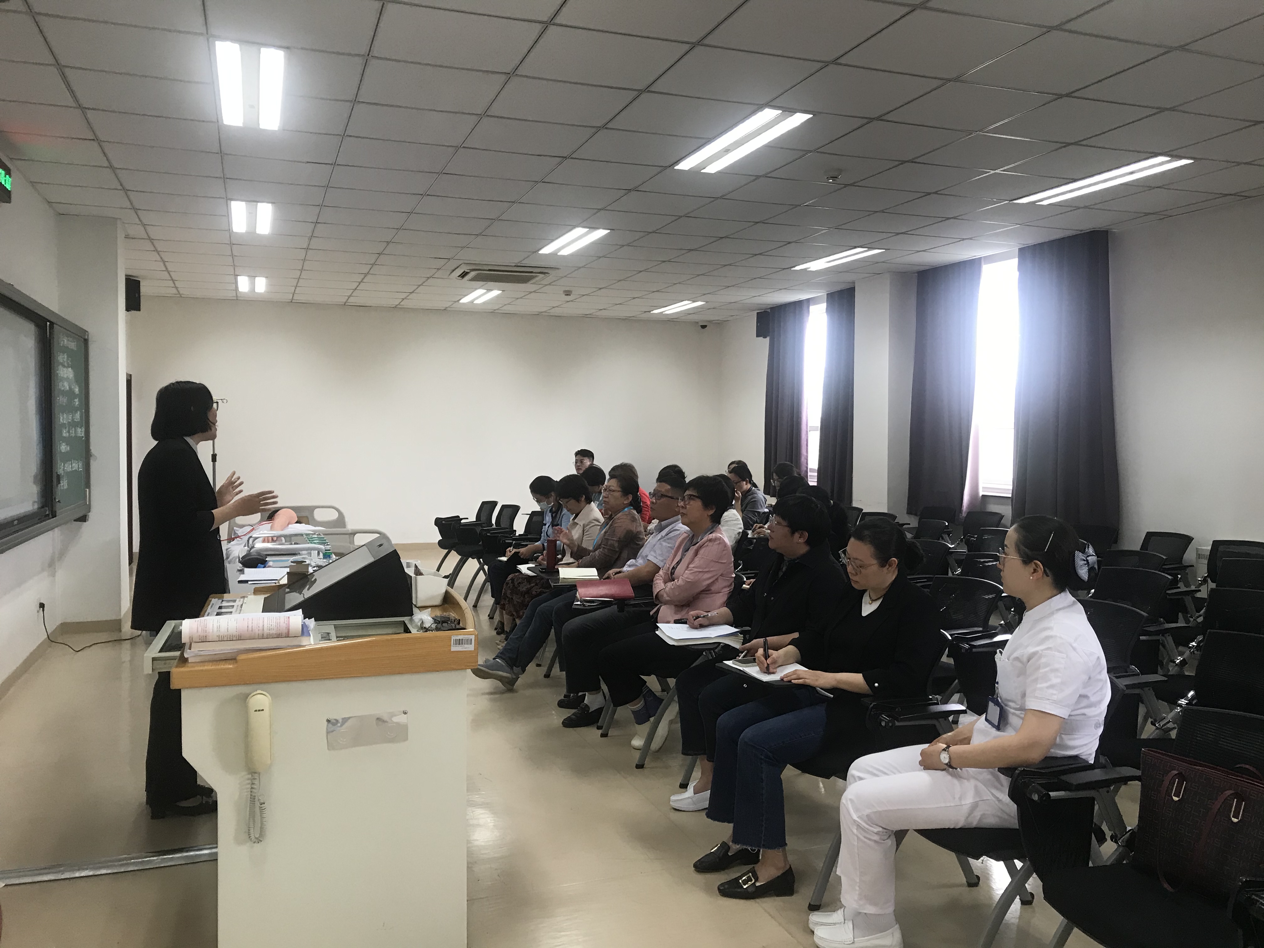 随后,李如雪老师进行了《静脉输液》操作示教。她清晰演示了完整的操作步骤和技能要点,获得与会者的高度评价。之后,李如雪老师提出了实验教学中可能出现的不一致处,课程组的临床教师和专任教师分别结合临床经验和教学经验展开了深入的讨论,基本确定了该操作的标准带教流程。与会教师也分别分享了实验教学同质化的经验以及通过本场活动的思考。