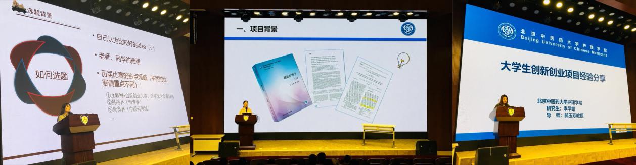 讲座中,三位同学分别从自身创新创业项目出发,分享科研过程中的经验和心得。其中,李佩瑶就如何书写计划书、如何答辩、如何申请安利、研究中遇到的困难等方面内容进行分享;马睛雅分享将课本的知识转化为临床实用技能或工具的思维方法;李学靖鼓励大家从政策中寻找研究方向,在日常中注意细节发现研究问题。最后,同学们从项目书的撰写、如何挑选研究方向以及如何确定器具改良中的数据等问题向三位主讲人积极提问,活动圆满完成。