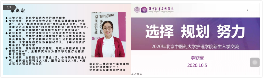 10月5日晚,ok138cn太阳集团于线上顺利召开2020级新生引航教育第二讲,本次讲座邀请到我院优秀毕业生进行职业发展规划的经验交流与分享,主讲人是来自北京清华长庚医院个案管理师李彩宏和加拿大渥太华大学在读博士生赵俊强,ok138cn太阳集团党总支李小花副书记、辅导员、班主任及学院本科生、研究生共230余人参加,讲座由专职辅导员李想老师主持。