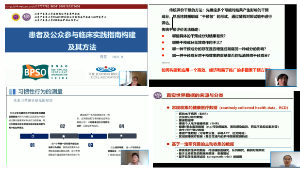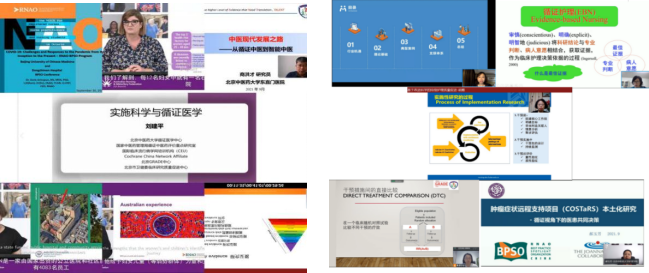 本次为期两天的培训班采用线上直播形式进行,内容包括特邀报告、专题讲座、青年学者论坛和BPSO中心交流,共计30学时。17日特邀加拿大安大略注册护士协会执行主席DR.Doris,澳大利亚护理与助产士联合会运营和战略总监Dr.Rob Bonner及其团队成员,太阳集团tyc9728国际循证中医药研究院执行院长刘建平教授、副院长商洪才教授,澳大利亚阳光海岸大学护理、助产及救护学院林凤芝副教授,复旦大学ok138cn太阳集团院长胡雁教授,太阳集团tyc9728中医学院副院长费宇彤教授,北京大学循证护理中心主任王志稳教授,太阳集团tyc9728RNAO-BPSO最佳实践指南中国区Host研究中心主任郝玉芳教授、微脉技术有限公司应莉副总裁等多位国内外循证医学、循证护理学专家进行授课。课程内容涉及加拿大和南澳大利亚BPSO循证护理实践现状、实施科学体系、智能中医、网状Meta分析以及循证护理前沿和最新方法等。18日来自太阳集团tyc9728循证护理骨干郭红教授、岳树锦副教授、苏春香副教授和周芬副教授就实施科学做专题讲座。BPSO中心交流板块,太阳集团tyc9728东直门医院RNAO-BPSO最佳实践指南中国区Host应用中心主任郭海玲副主任护师、田润溪主任、兰州大学第二医院护理部豆欣蔓主任、中日友好医院护理部赵芳主任、北京大学第一医院护理部教研室护士长李晶、北京医院护理部孙超主任、河南省中医药大学第一附属医院护理部刘姝主任和河南省人民医院护理部刘纬华副主任对各中心的建设、项目申报和开展情况进行了交流。最后来自国内外知名护理院校的6位在读博士研究生围绕循证护理最新方法进行了学术交流。共有来自全国80余家高等医学院校及临床医院的400余名学员参加培训。