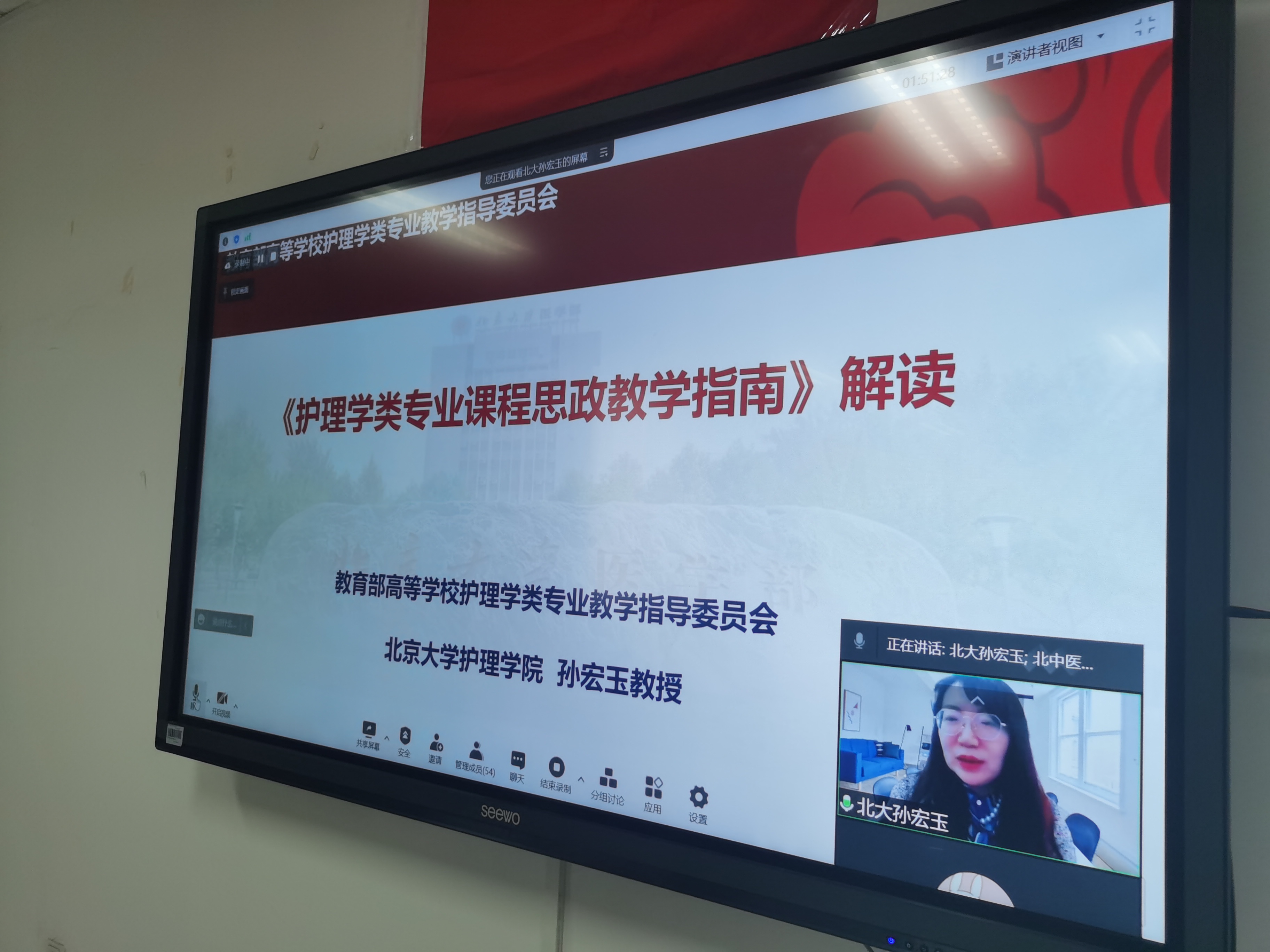首先,刘香弟院长代表学院感谢孙秘书长对我院课程思政建设工作的大力支持,强调课程思政建设是学院人才培养的重要工作,是贯彻立德树人的关键环节,此次邀请秘书长做护理学类专业课程思政教学指南的解读,对于我院下一步课程思政建设具有重要的指导意义。
