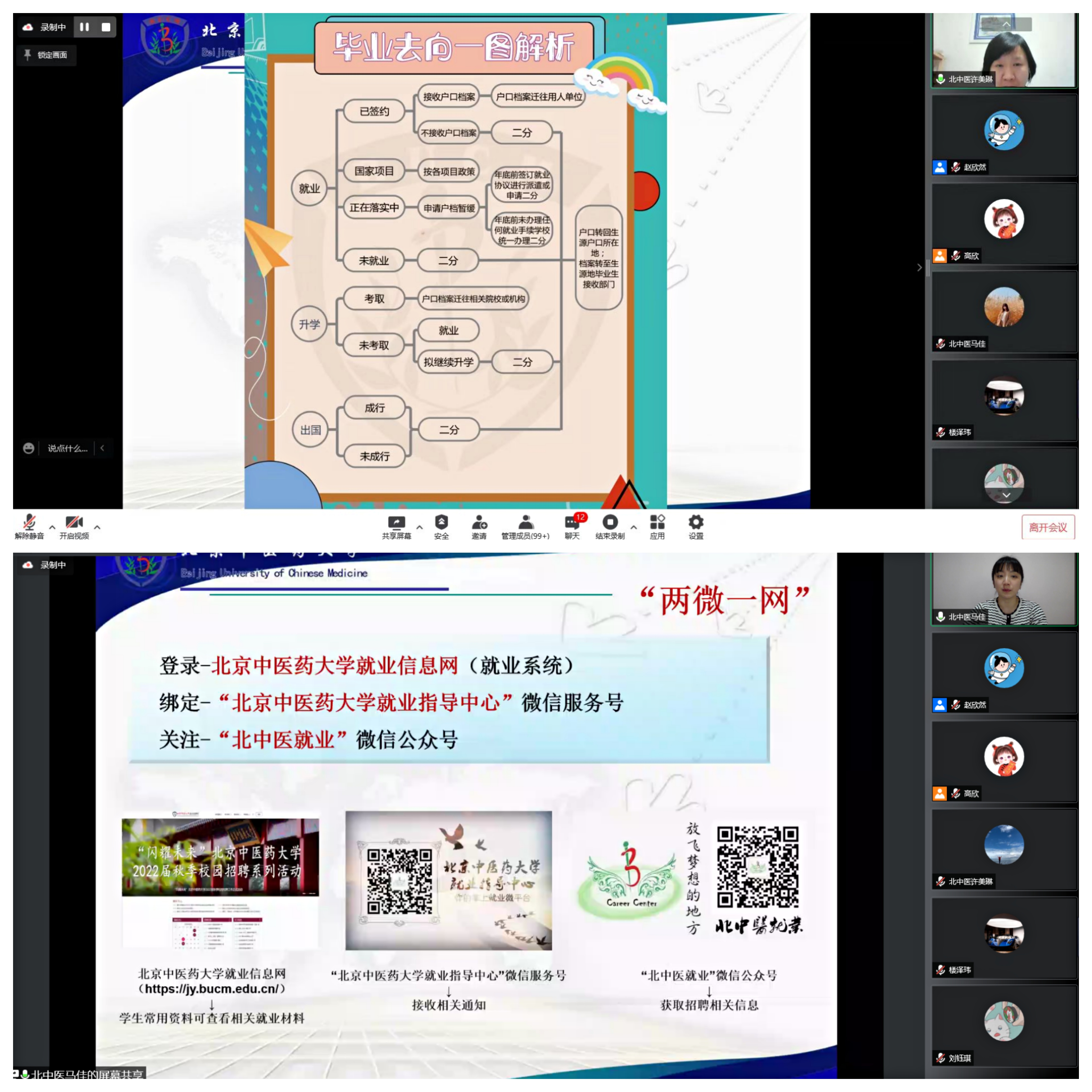之后两位老师对于同学们在留言区的个性化问题进行了耐心地解答与指导,并对同学们顺利就业表达祝愿。随后,李小花副书记强调以下五点内容:明确当前就业环境,鼓励学生积极就业,先就业后择业;与班主任同步更新就业进展,推进就业手续办理;补充暂缓派遣相关内容,提醒学生尽快办理;强调学校疫情防控政策及实习结束后出入校管理流程和要求;梳理后期学院毕业安排,合理规划时间,规律作息,为下一个阶段的学习工作做准备。