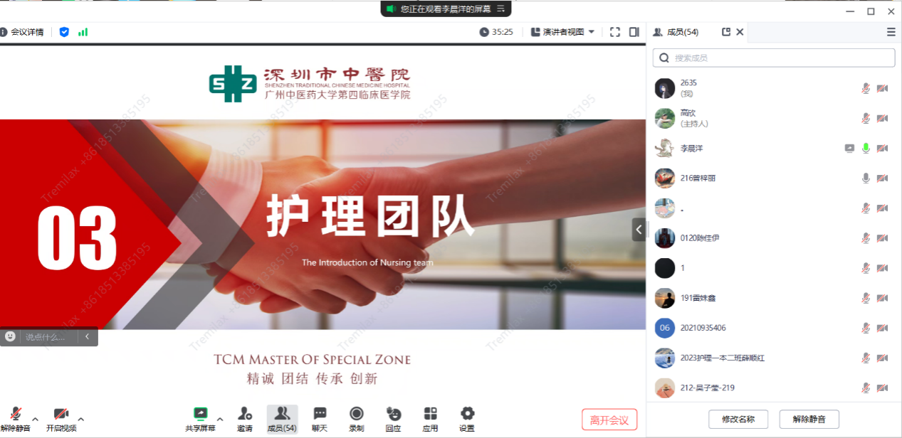 首先,李老师介绍了中医药事业与深圳市中医院的发展现状,简单总结了中医药事业目前正处于高质量发展时期,深圳市中医院也处于蓬勃发展的时期。随后,李老师从医院建设、教学能力、科研能力、专科建设、智慧医院建设、护理团队建设等方面进行了介绍,点明了深圳市中医院的优势与发展目标。最后李老师对深圳市中医院的护理工作进行了详细的介绍,她指出深圳市中医院非常重视护理专业发展与护理学科建设,同时对中医护理专业发展与护理人才发展也给予极大支持,加之深圳市的地理优势,院内护理人员有较多出国出境交流学习的机会。讲述结束后,李老师还针对同学们在留言区提出的职业要求、职业发展、招聘流程等各类问题进行了耐心地解答。