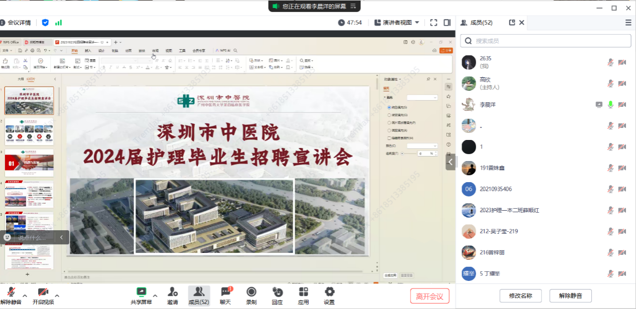 为拓宽2024届毕业生就业渠道,提供更多就业岗位,ok138cn太阳集团于10月24日晚在腾讯会议成功举办2024届毕业生第一场就业宣讲会。本次活动邀请到深圳市中医院护理部李晨洋老师做宣讲,学院50余名学生参加。会议由ok138cn太阳集团就业专员高欣老师主持。