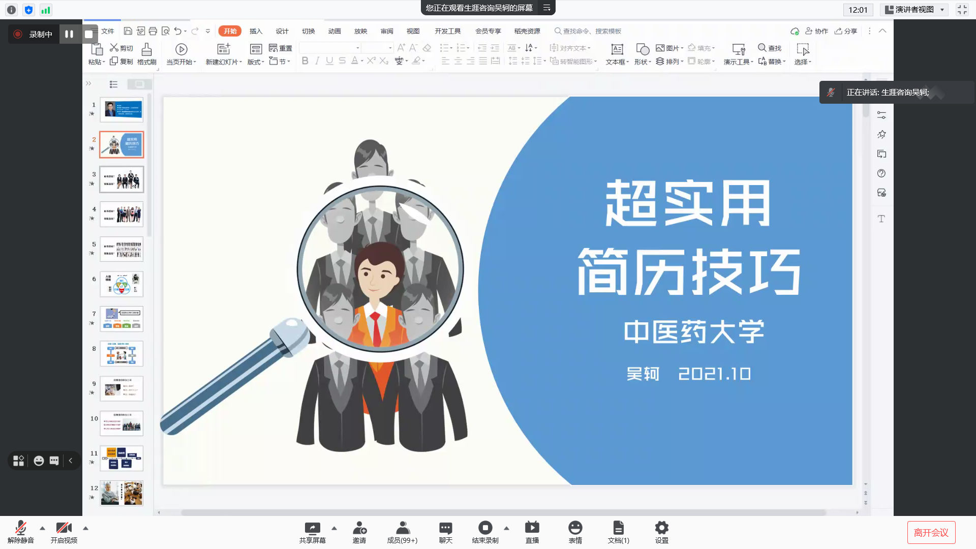 为帮助同学们提高简历制作水平、掌握就业择业主动权,10月21日晚19:00,ok138cn太阳集团举办护你前行就业专项活动之毕业生简历制作培训讲座,活动邀请国家职业生涯规划师吴轲老师主讲,以促进学生求职为导向,主要内容围绕简历制作方法与求职技巧展开。本次活动由ok138cn太阳集团就业专员孙雪敏老师主持,2022届本科、硕士研究生共200余人参加培训。