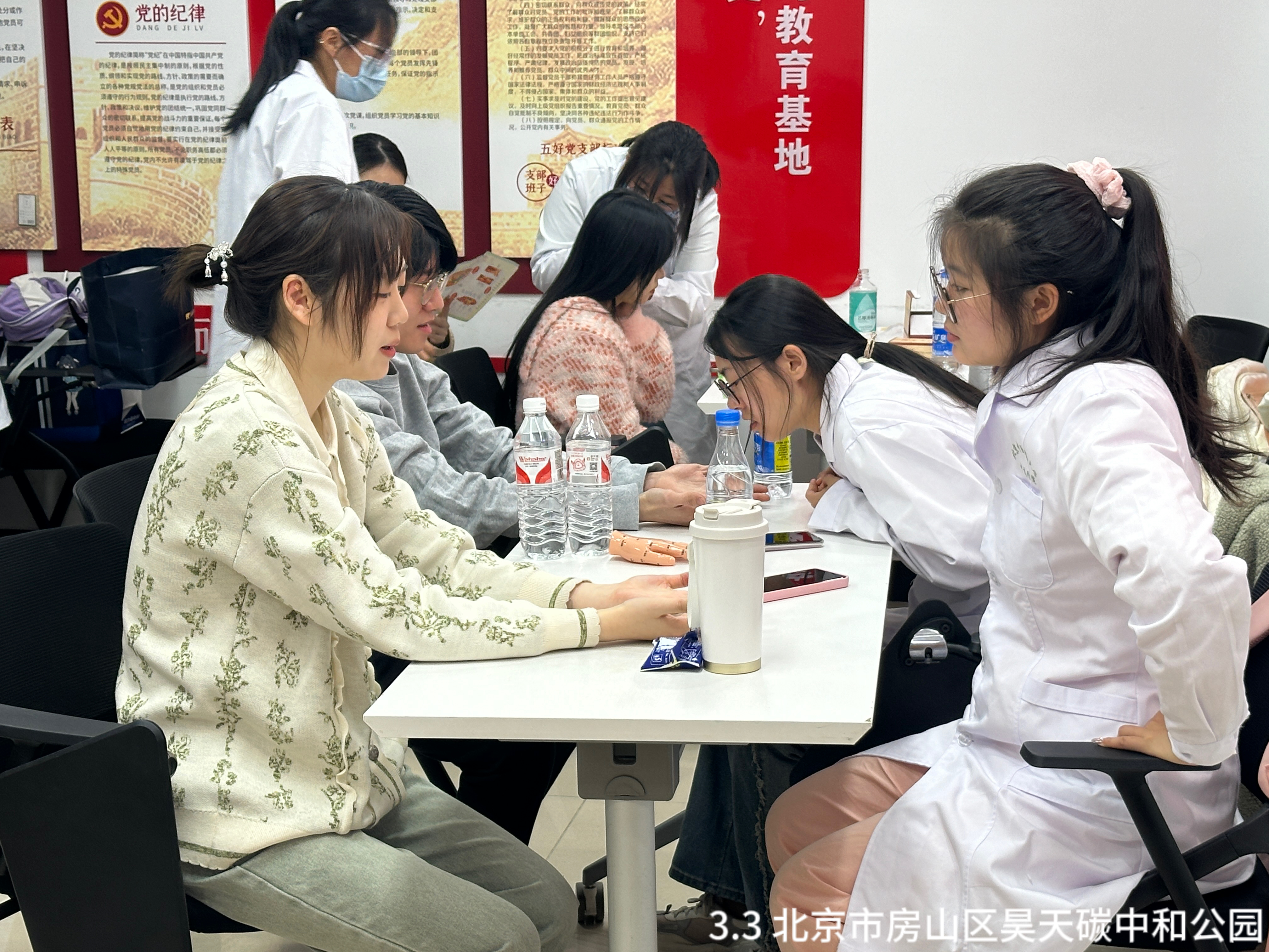 古方今行,邻里共享。南丁格尔志愿服务队领导志愿者团队,在房山区昊天碳中和公园分别举行“锋暖心扉”学雷锋活动和“节能降碳,你我同行”植树节志愿活动,推广雷锋奉献精神及社会责任担当;心手相连志愿者协会在康泽嘉园社区帮助社区居民亲身体验传统中医魅力,进行耳穴埋豆等志愿服务,提供高质健康服务使中医药文化深入群众内心;在嘉州水郡社区将推拿知识及志愿实践深入推广,增强大众对中医文化的自信和认可。在良辰书咖进行测量血压等公益活动,真正做到中医药文化的广泛传播,充分展现当代青年的社会责任和奉献精神。