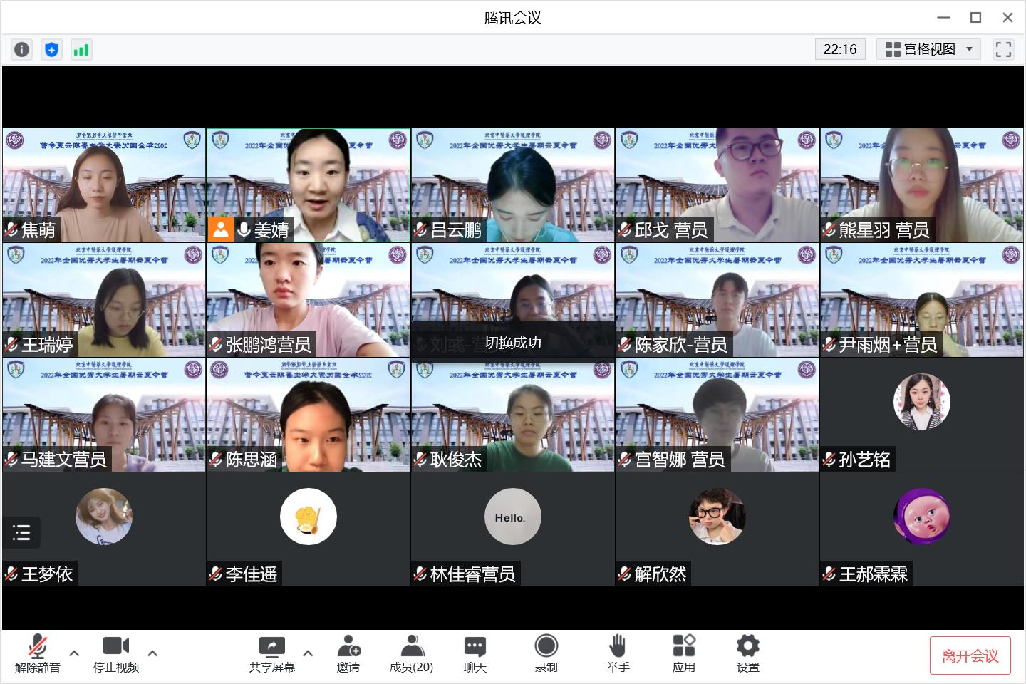 2022年7月21日至22日,ok138cn太阳集团举办了第一届全国优秀大学生云夏令营,来自全国18所高校43名优秀学子参与报名,经过资格和材料审核,共有16名同学成功入营。为使营员更好地了解太阳集团tyc9728以及ok138cn太阳集团,本届夏令营组织了丰富多彩的活动内容,导师与营员“心相连,一线牵”相聚云端,共同度过了充实且有意义的两天时光。