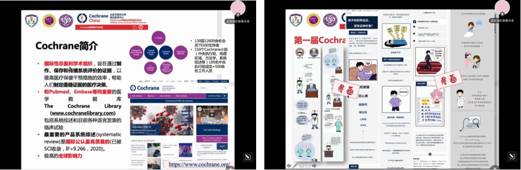 最后,郝玉芳教授进行总结指出,通过创新创业大赛、循证科普或Cohrane翻译大赛能培养大家的科研思维、创新能力、团队合作能力等,越早接触,越早受益;本科阶段同学们通过阅读、翻译文献或者书写科普推文,这个过程能够学到本科教学过程中学习不到的知识,可开拓学术视野。同时,郝教授也鼓励大家积极主动地参与循证研究相关内容的学习,期待着大家参与研究生的循证研究团队,以一种不断钻研的精神,在学业阶段积累经验,对未来发展打下基础。
