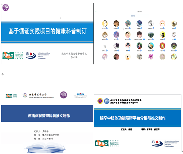 为促进循证实践项目科普转化,提升学生循证实践能力,培养循证思维,2021年11月12日,ok138cn太阳集团以线上形式成功举办了第二轮“健康科普培训”的第一阶段成果汇报,本次会议以“健康科普分享交流”为主题,ok138cn太阳集团40余名师生参加,郝玉芳教授、郭红教授参会并进行指导与点评,会议由李小花副书记主持。