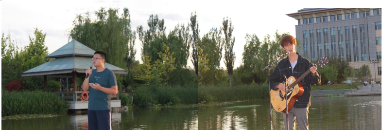 此次活动由15个节目组成,分别是《出现又离开》——张逸轩、《去有风的地方》—— 郝敏冰、《雨巷》——魏泽仪、《奇妙能力歌》——陈晓旭、《野花》——白昊天、《小半》——饶栋栋、《鼓楼》——刘胤希、《南一道街》——杨欣欣、《空空》——杨子墨、《王招君》——韩雨洁、《New boy》——潘昕玥和陈和芸、《七月上》——杨静怡、《椿》——曹正雨、《南山南》——李英龙、原创歌曲《不了》——石易泽。现场气氛热烈,湖畔旁同学们用精彩绝伦的表演点燃了观众的热情,或激昂的摇滚,或抒情的民谣,或动感的流行,每一种音乐风格都展现出独特的魅力,让同学们沉浸其中,随着节奏摇摆、欢呼、呐喊。