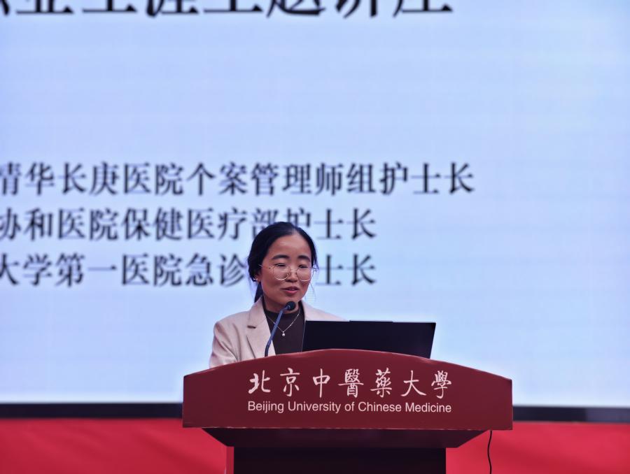 讲座首先由李彩宏老师带来题为“从无形到无价——护理职业发展心路”的分享。李老师回顾了自己从初入北中医时的迷茫,到辗转多个科室后逐渐坚定职业方向的心路历程。她指出,护理专业外延广阔,不仅局限于临床,更延伸至慢性病管理、健康科普、个案管理等多个领域。李老师以糖尿病个案管理为例,介绍了护理人员在患者全程健康管理中的关键作用,强调护理工作是“平凡中见温暖”,并鼓励同学们打破对护理的传统偏见。她还提到,在信息化与全球化的背景下,护理人才应掌握语言能力、善用科技手段,积极参与国际交流,将中医护理智慧推向世界。