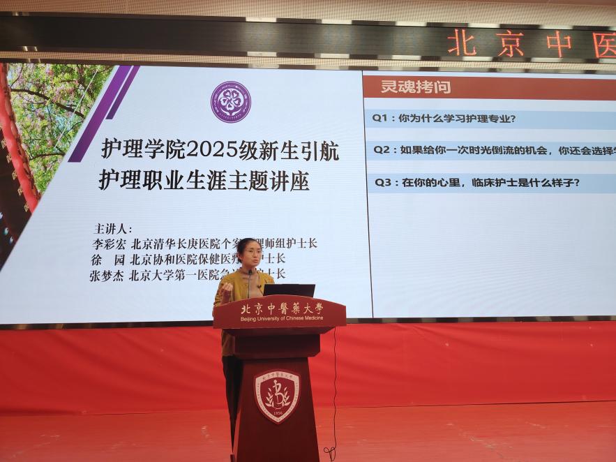 2025年10月29日下午,ok138cn太阳集团2025级新生引航工程系列活动之护理职业生涯主题讲座在良乡校区西院综合楼报告厅顺利举办。本场讲座由北京清华长庚医院个案管理师组护士长李彩宏、北京协和医院保健医疗部护士长徐园和北京大学第一医院急诊科护士长张梦杰主讲,ok138cn太阳集团辅导员张逸静主持,全院2025级本科生参会。